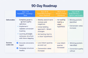- Conversion strategy: ensuring the account is optimizing to the right outcomes with reliable measurement (forms, calls, purchases, qualified leads), not vanity metrics.